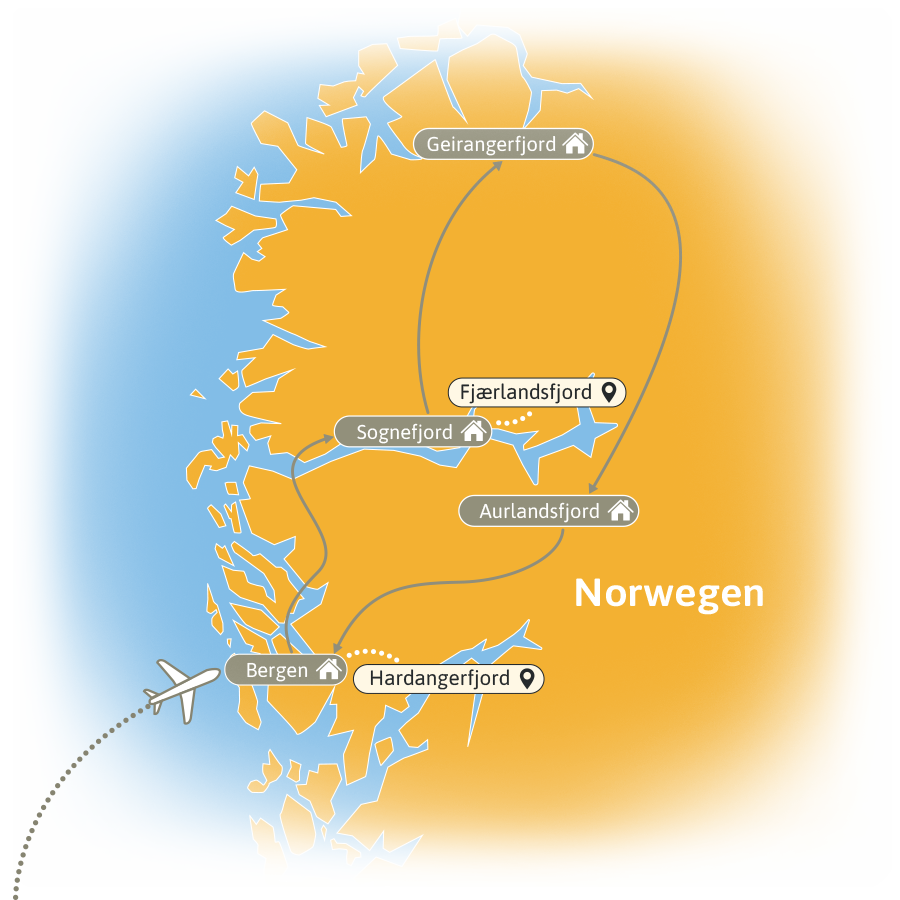 Bergen – Sognefjord – Geirangerfjord – Aurlandsfjord – Bergen